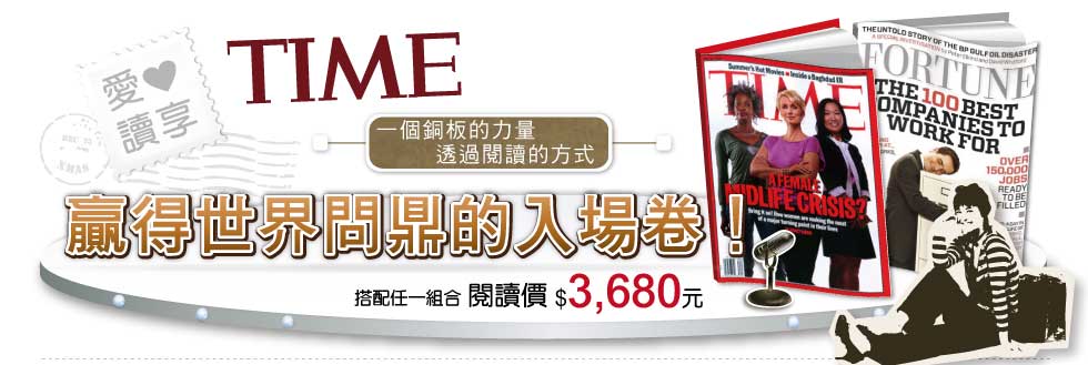 訂購TIME時代雜誌超值A方案、TIME時代雜誌超值B方案、TIME時代雜誌大放送方案、亞洲週刊、財富雜誌 FORTUNE、富比士雜誌 FORBES、經濟學人The Economist、探索頻道雜誌 DISCOVERY、讀者文摘 READER'S DIGEST、美國商業週刊 BUSINESSWEEK、美國商業周刊高階主管訓練課程EDGE。2種以上雜誌套餐優惠組合。